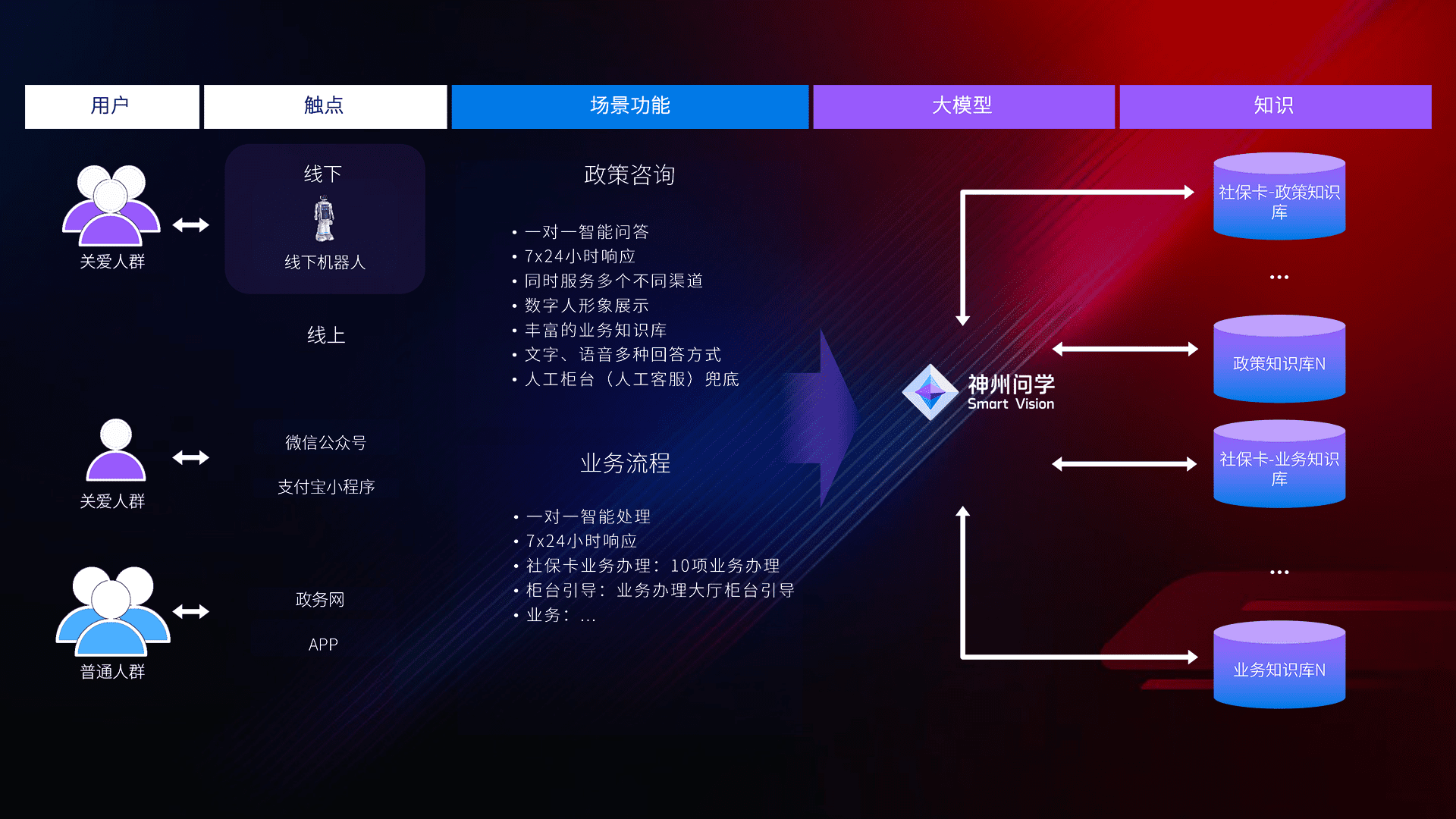 • 线上线下全覆盖:线上提供微信公众号、、、、支付宝小程序、、、政务网、、、、app多种渠道,,,与线下机器人形成完整服务体系。。